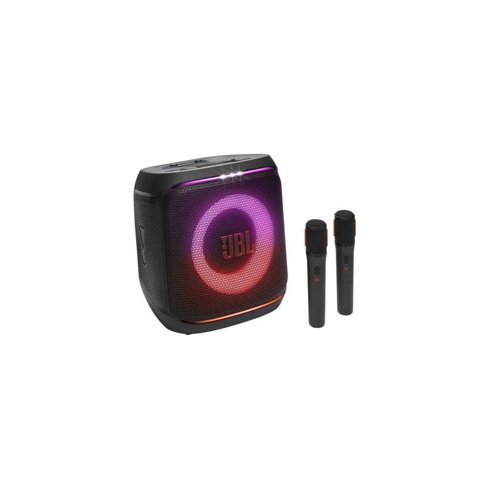 El modelo JBLPBENCORE22MICAM incluye un micrófono inalámbrico de alta calidad con controles integrados, ideal para cantar, hablar o animar. Con su sonido potente, diseño portátil y funciones pensadas para la diversión, el PartyBox Encore 2 es el parlante definitivo para quienes buscan energía, estilo y rendimiento en cada fiesta.