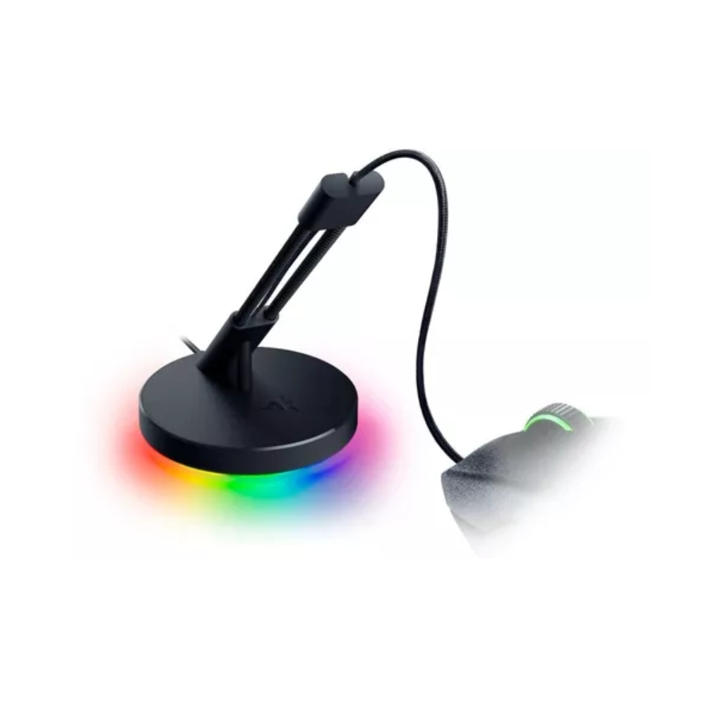 El Razer Mouse Bungee V3 Chroma es un accesorio diseñado para mejorar la experiencia de juego al eliminar el arrastre del cable del ratón, proporcionando movimientos más fluidos y sin interrupciones. Cuenta con un brazo de resorte con abrazadera de presión recubierta de caucho, compatible con la mayoría de los cables de ratón, que mantiene el cable elevado por encima de la superficie de juego. Su base antideslizante y con peso garantiza estabilidad incluso durante sesiones de juego intensas. Además, incorpora iluminación Razer Chroma RGB personalizable, ofreciendo 16,8 millones de colores y diversos efectos para una mayor inmersión y personalización.